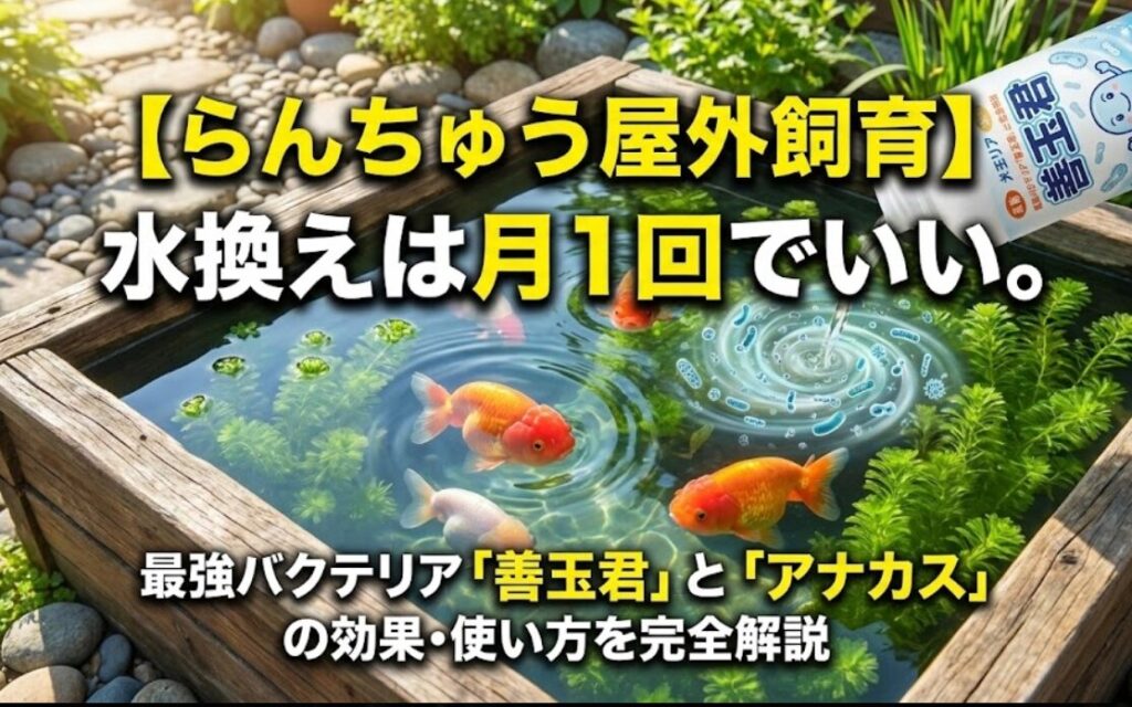 【らんちゅう屋外飼育】水換えは月1回でいい。最強バクテリア「善玉君」と「アナカス」の効果・使い方を完全解説
