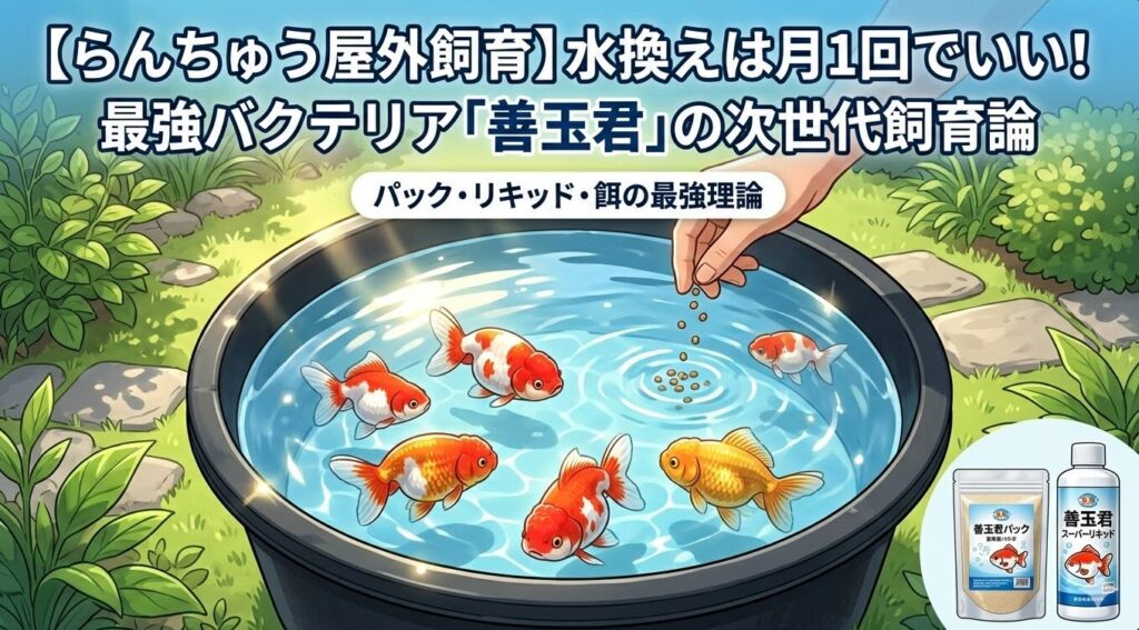 【らんちゅう屋外飼育】水換えは月1回でいい!善玉君パック・リキッドと餌の最強理論