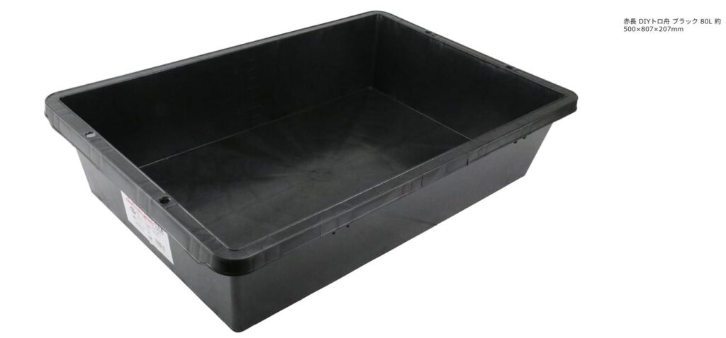 みんなこぞって、ホームセンターの資材売り場にあるような「黒いプラスチックの箱(プラ舟)」を使っているんです。